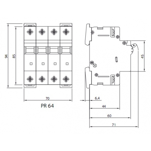- нижняя защелка с пружиной для крепления на рейку 35 x 7,5 EN 60715 позволяет также выбрать защитный электрический автомат из ряда приборов, соединенных нижней соединительной шиной без нарушения соседних цепей тока