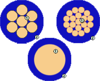 Токонесущая жила выплавлена из меди как монолитная проволока (класс 1) для кабеля ПВ1 или скручена из 7-ми, 19-ти, 37-и, 61-й и 91-й проволоки (класс 2,3,4 и 5 по ГОСТ 22483) для кабелей ПВ1, ПВ2, ПВ3 и ПВ4. Кабель марки ПВ имеет одну токонесущую жилу сечением от 0,5 до 95 кв. мм (провод ПВ 2 – от 2 до 95 кв. мм, провод ПВ 4 – от 0,5 до 10 кв. мм). Подробные данные по классам жил, которые использует кабель провод, приведены в ГОСТ 22483-77.