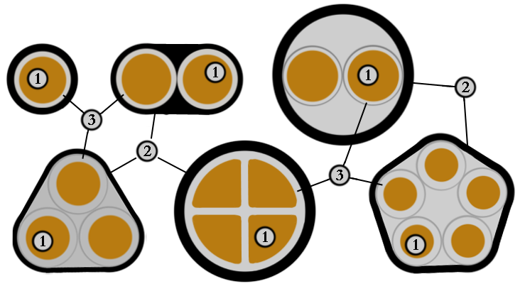 Кабель ВВГ-660 имеет сечение жил от 1,5 – 50 кв. мм, а ВВГ-1 1,5 – 240 кв. мм. Жилы также имеют круглую и фасонную (секторную) форму. Жилы между собой скручены, а кабель DDU с сечением жил до 16 кв. мм может менять направление скрутки.